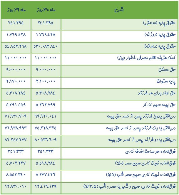 «جدول حداقل حقوق و دستمزد کارگران قانون کار در سال ۱۴۰۲»